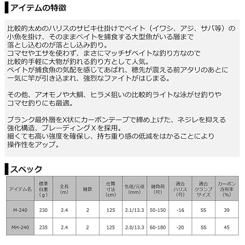 標準全長(m):2.4 / 継数(本):2 / 仕舞(cm):125