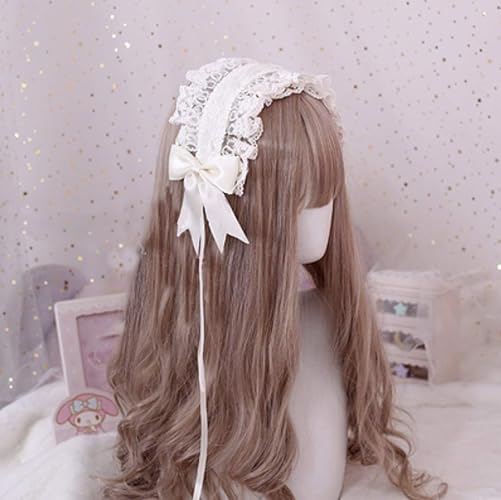 ロリータ レース レディース カチューシャ フリル ゴスロリ リボン コスプレ 髪飾り ヘアアクセサリー 萌え キュート メイドカフェ【J's select】 (白)