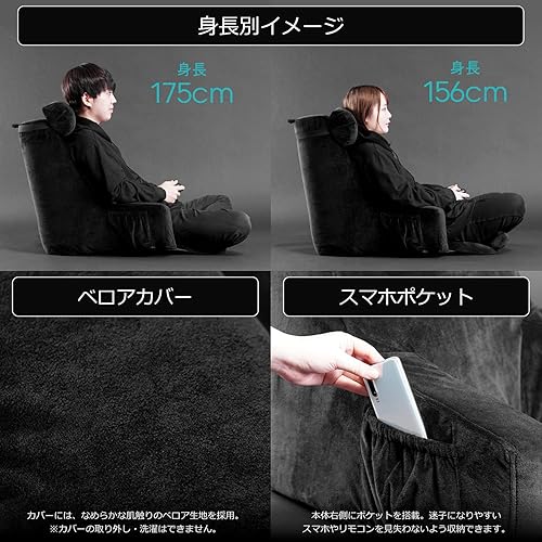 【こだわりの肘掛け】肘掛けは高めに、20cm幅にしました。読書やゲーム・スマホ・タブレットなどの操作を楽な姿勢で行うことができます。本体右側には、迷子になりがちなスマホ用のポケット付き。