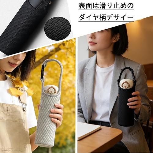 【500ml-600mlに適用】弾力性がある特殊な材料で作られて、水筒のサイズに合わせて広げることができます。水筒の直径は6cmから7cmに適用、450ml~600mlの保冷水筒、魔法瓶、ペットボトルに適用。