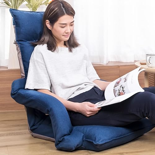 WAVV 座椅子 ひじ掛け付き ハイバック 低反発 背もたれ・頭部 14段階調整 肘掛けリクライニングに連動 1人掛け フロアチェア 座椅子 (麻リネン布 生地, ネイビー)