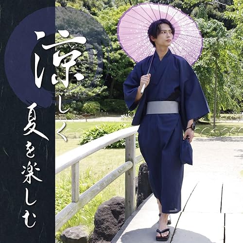 【 商品の仕様について 】メンズ浴衣セット(浴衣・帯・内帯・巾着・扇子・下駄) 浴衣:綿100%、帯:ポリエステル100%、内帯:ポリエステル100%。カラーは黒しじら、紺しじら、濃紺しじら、灰しじら、夜雨の5種類。サイズはS・M・Lサイズをご用意。お好きなカラーと帯で夏をお楽しみください。 夜雨のみ平織となっております。