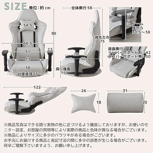 SAKODA calmzen ファブリック ゲーミング座椅子 肘掛け付き 回転 リクライニング ゲーミングチェア パソコンチェア フロアチェア ハイバック クッション グレー SGC-FZ-GY