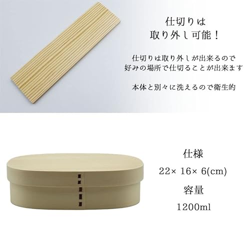 ご注意:ご覧頂いてます環境により、色の見え方が若干異なる場合がございます。 天然の木材を使用しておりますので、商品1点1点風合いが異なります 大きさの目安はあくまで目安となります お弁当箱と一緒に写っているお箸やコップ類は付いておりません。曲げわっぱとは、生の木の板を、特殊な技法で曲線に曲げて、継ぎ目を山桜の皮で綴じ、底をつけた器のこと 職人が1つ1つ手作りで、丁寧に組み上げたものを削り出し、手にフィットする仕上がりに 木目と色合い、香りの良さ、普遍的なデザインが曲げわっぱ魅力 また、木の保湿効果により、冷めてもご飯が硬くなりにくく、美味しくいただけます