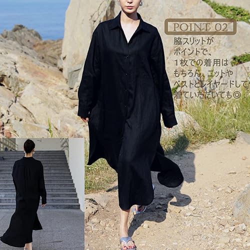 [1/2style] レディース シャツ 羽織り ロング スリット入り 無地 長袖 カーディガン チュニック ポケット付き