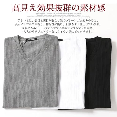 【モデル】身長:181cm 体重:67kg / B86 / W75 / H96 / 着用サイズ:L収縮性のあるランダムテレコ素材の凹凸感により高見え効果もあるカットソー。 ベーシックデザインなので流行りに関係なく活用できるTシャツです。 ジャケットやシャツ・パーカーなどのインナーにもお勧めです。