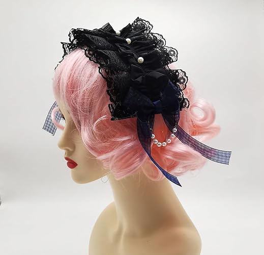 ゴスロリヘアアクセサリー 蝶結び 付き 髪飾りフリル レースフリル カチューシャコスプレ系 お人形茶話会 パーティー コスプレ系 エンゼルロリータ 地雷系 lolita おしゃれリかわいい ヘッドドレス (ネービーnavy)