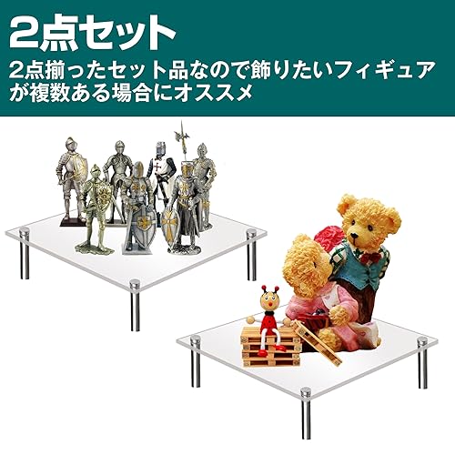 HAMILO アクリルディスプレイスタンド フィギュア ひな壇 正方形 脚付き 2点セット (20×20×5cm)