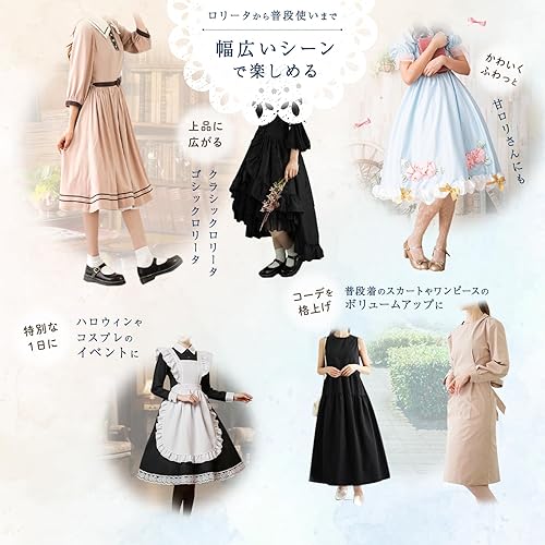 👗【普段着にもOK】自然なAラインのシルエットだから、ロリータ服以外にも、フォーマルドレスや結婚式、日常的に着るワンピースやロングスカートなどボリュームを持たせたい衣装に幅広く着用できるロングパニエです。※かさばる商品ですので、畳んで小さい袋に入れてお届けしております。 開封後、形を整えてご使用いただきますようお願いいたします。👗【美しいAラインのロングパニエ】自社のロングパニエは上品なAラインが作れるよう設計され、膝上の短いスカートから、膝下の丈が長いスカートにも履けるロングタイプのパニエです。クラシックロリータ服やゴシックロリータ服など落ち着いたロリータファッションにおすすめ♪ 👗【パニエの長さ調整が可能】長さ調整は50~65㎝まで可能、短いスカートから長めのスカートまで対応したロングパニエです。短いスカートの時は調整部分を折り畳んでボリュームを持たせ、長いスカートの時はAラインの綺麗なシルエットを魅せるなど、ロングパニエ1着で幅広い衣装に合わせることができます。 👗【優しいゆったりサイズ】ウエスト85㎝まで対応。自社のロングパニエは伸縮性のある優しいウエストゴムを使用しており、おなかを締め付けられることなく衣装を楽しむことができます。 👗【新色ブラック】クラシックロリータ服やゴシックロリータ服には欠かせない、黒色のロングパニエ新登場!落ち着いた色合いの衣装には黒色のロングパニエを着用することで統一感UP。チラッと見えても安心です。 👗【普段着にもOK】自然なAラインのシルエットだから、ロリータ服以外にも、フォーマルドレスや結婚式、日常的に着るワンピースやロングスカートなどボリュームを持たせたい衣装に幅広く着用できるロングパニエです。 ※かさばる商品ですので、畳んで小さい袋に入れてお届けしております。 開封後、形を整えてご使用いただきますようお願いいたします。