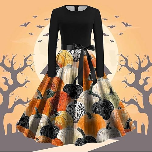 [Ramiter] ワンピース レディース ハロウィン 仮装 可愛い おしゃれ 魔女 コスプレ イベント コスチューム 長袖 ハロウィンコス パーティー 衣装 ドレス Aライン 城 ハロウィン かぼちゃ ロングスカート お姫様 文化祭 忘年会