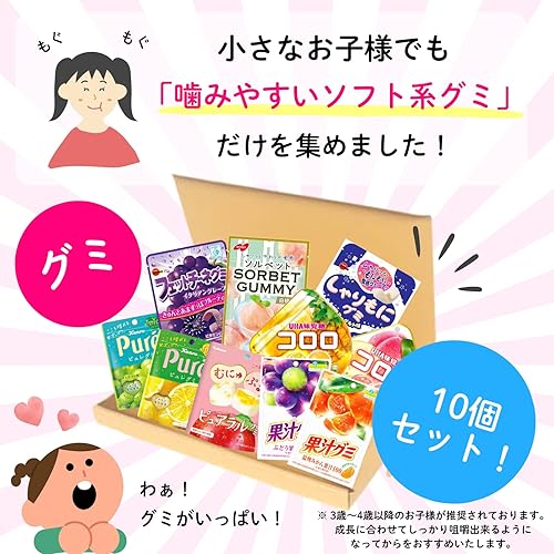 人気 グミ 詰め合わせ 子ども 10種 計 10個 しゃりもに フィットチーネ ポイフル ピュレグミ 果汁グミ ピュアラル コロロ ソルベット