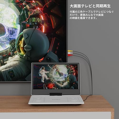 【全世界DVD対応・テレビ同期再生】日本だけでなく、海外全域の正規DVDにも対応しており、海外旅行にも持って行くことができ、使いやすいです。AV入出力端子が付いており、付属の3 in 1 AVケーブルを使用して、テレビに接続したり、大画面の映画を再生したり、家族や友人と楽しんだりすることができます。