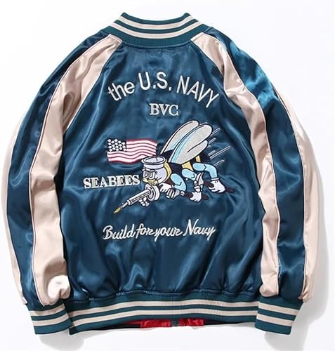 スカジャン 横須賀ジャンパー コート 裏表仕様 リバーシブル 刺繍 ジャケット 長袖 サテン素材 洋風 和風 鶴 ストリート ゴジラ モスラ スーベニアジャケット ライダースジャケット 保温 防寒 保温 通勤 男女兼用 (XL)