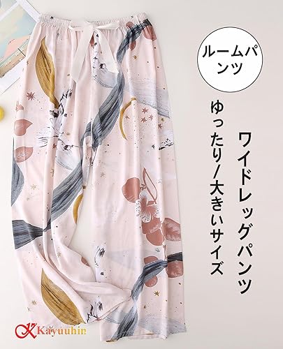 [Kayuuhin] ルームパンツ 広い脚 レーヨン パジャマ ズボンだけ レディース 薄い 涼しい快適な 部屋着 体型カバー リラックス