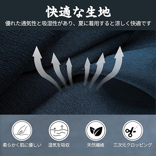 高品質な麻綿混紡生地 - 高品質な麻綿混紡生地を使用し、通気性が良く、で吸湿速乾性に優れ、汗を素早く蒸発させてムレを防止、夏の着用に最適で、清涼感を保ちます