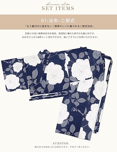 [NISHIORI] 二部式浴衣 レディース セパレート 浴衣セット 2点セット(浴衣、兵児帯) 簡単着付け 兵児帯付き セット 夏祭り 花火大会 二部式浴衣セット 女性用 トレンド柄 和モダン 着崩れしにくい