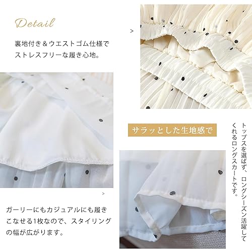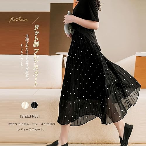 [7-livehouse] スカート レディース 夏 プリーツ ロング フレアスカート ドット柄 薄手 おしゃれ 可愛い ボリューム ふんわり 軽やか ゆったり 体型カバー ウエストゴム 通勤 普段着 お呼ばれ 春 夏 秋