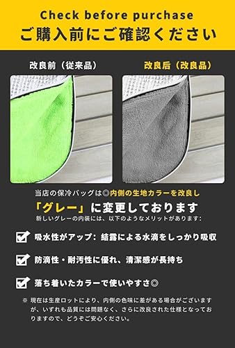 【素材】表素材:厚み3mmの両面アルミ保冷素材 裏地素材:マイクロファイバーのタオル