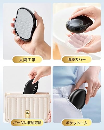💡【安全で効果的なご使用のために】 ①「強く押し当てない」「同じ部位を長時間使用しない」を厳守してください。 皮膚を傷つける恐れがあります。 ②推奨される1か所あたりの処理時間は3〜5秒を目安とし、連続使用は10秒以内でお願いします。 ③傷、腫れ、炎症、湿疹、吹き出物がある部位、また膝や肘などの骨が出ている部位では絶対にご使用にならないでください。 ④効果を高め、肌を守るために、使用前には十分な量のボディクリームや保湿ジェルを塗布し、使用後も保湿ケアを必ず行ってください。脱毛器 擦るだけ【業界新傑作・痛くない次世代モデル】無痛脱毛器 ナノガラス 物理脱毛 角質除去 手のひらサイズ 軽量 携帯便利 家庭用脱毛器 男女兼用 操作簡単 痛みゼロ 初心者向け 自宅 旅行 出張 ギフトにも最適 オシャレ (ブラック)