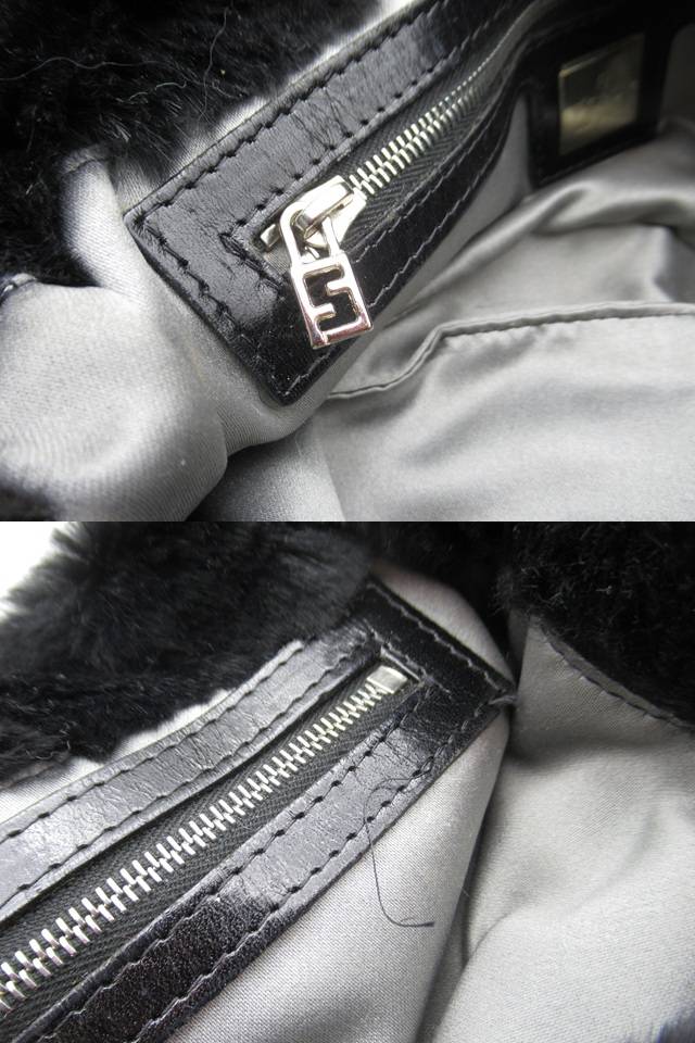 〓14)1円~FENDI/フェンディ『マンマバケット』 レディース ワンショルダーバッグ 希少 ラビットファー ブラック 黒 ハンドバッグ カバン Used