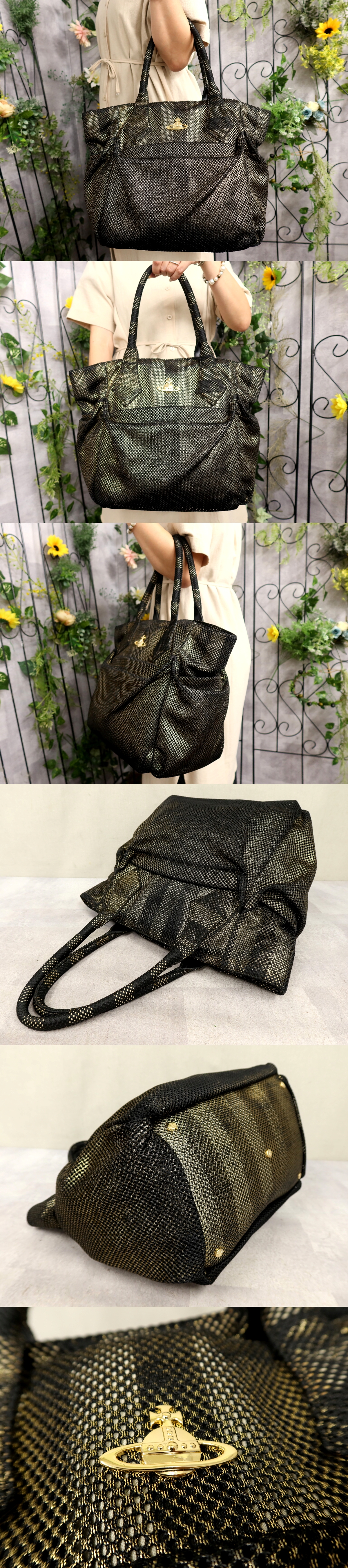 Original Japanese name: 超美品●Vivienne Westwood ヴィヴィアン・ウエストウッド●オーブ●メッシュ ナイロン●トート バッグ●黒 ゴールド●G金具●A4●Js58900