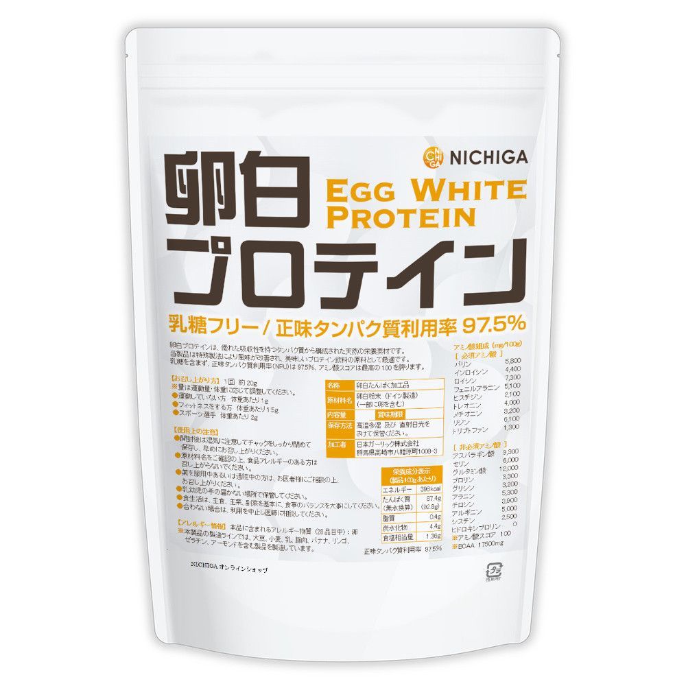【NICHIGA/ニチガ公式】 卵白プロテイン 1kg Egg White Protein 乳糖フリー 正味タンパク質利用率 97.5% エッグプロテイン TK0